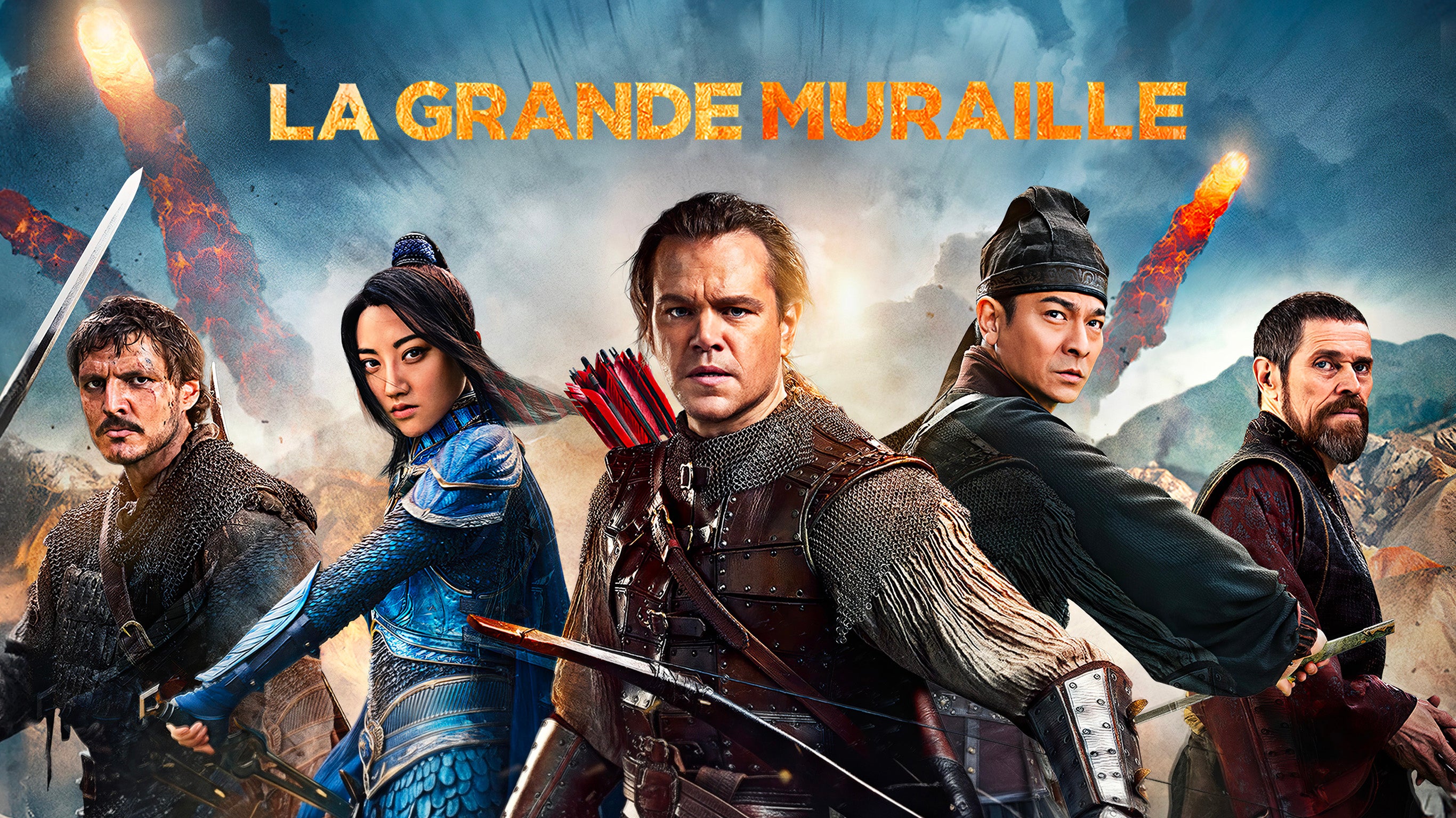 Il y a quelques siècles en Chine. William Garin fait partie d'une troupe de bandits qui parcourt le désert à la recherche d'un matériaux précieux et très convoité, la poudre à canon. Après avoir été attaqués par un monstre qu'ils sont parvenus à défaire, William et Pero Tovar, seuls rescapés poursuivis par des cavaliers, se rendent auprès de militaires en garnison dans la Grande Muraille de Chine. Les deux hommes comprennent bientôt que la muraille est assiégée par des créatures terrifiantes...